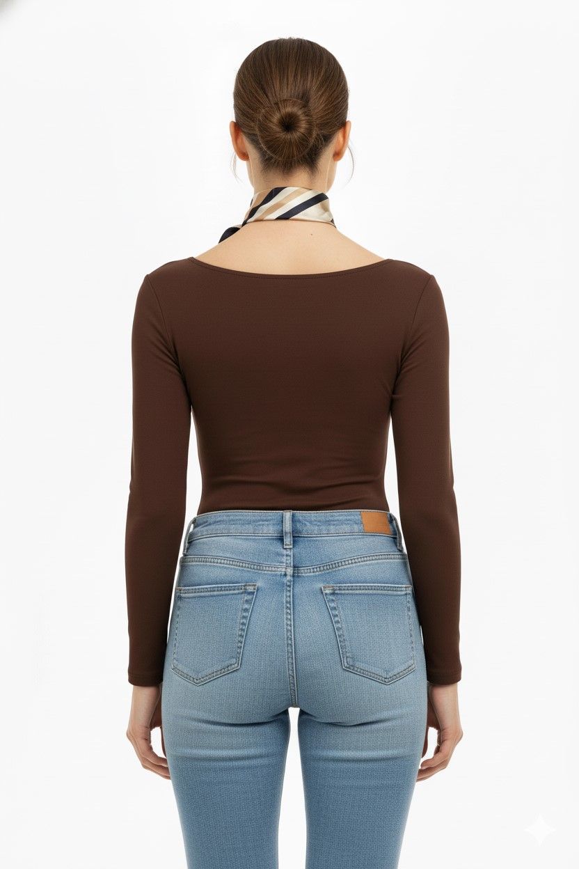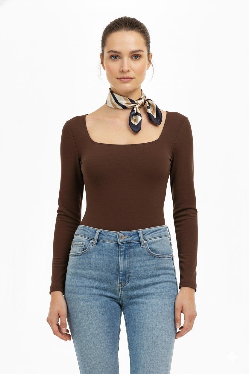 Este elegante body de manga larga presenta un sofisticado escote cuadrado, ideal para complementar diversos atuendos. Su diseño versátil se ajusta cómodamente al cuerpo, resaltando la silueta de manera sutil. Confeccionado para ofrecer suavidad y un ajuste impecable, es una pieza esencial para cualquier armario. Sus costuras finas y broches discretos garantizan un acabado pulcro y funcional.
