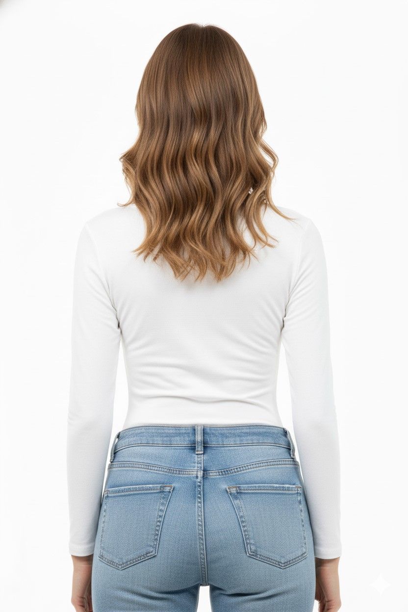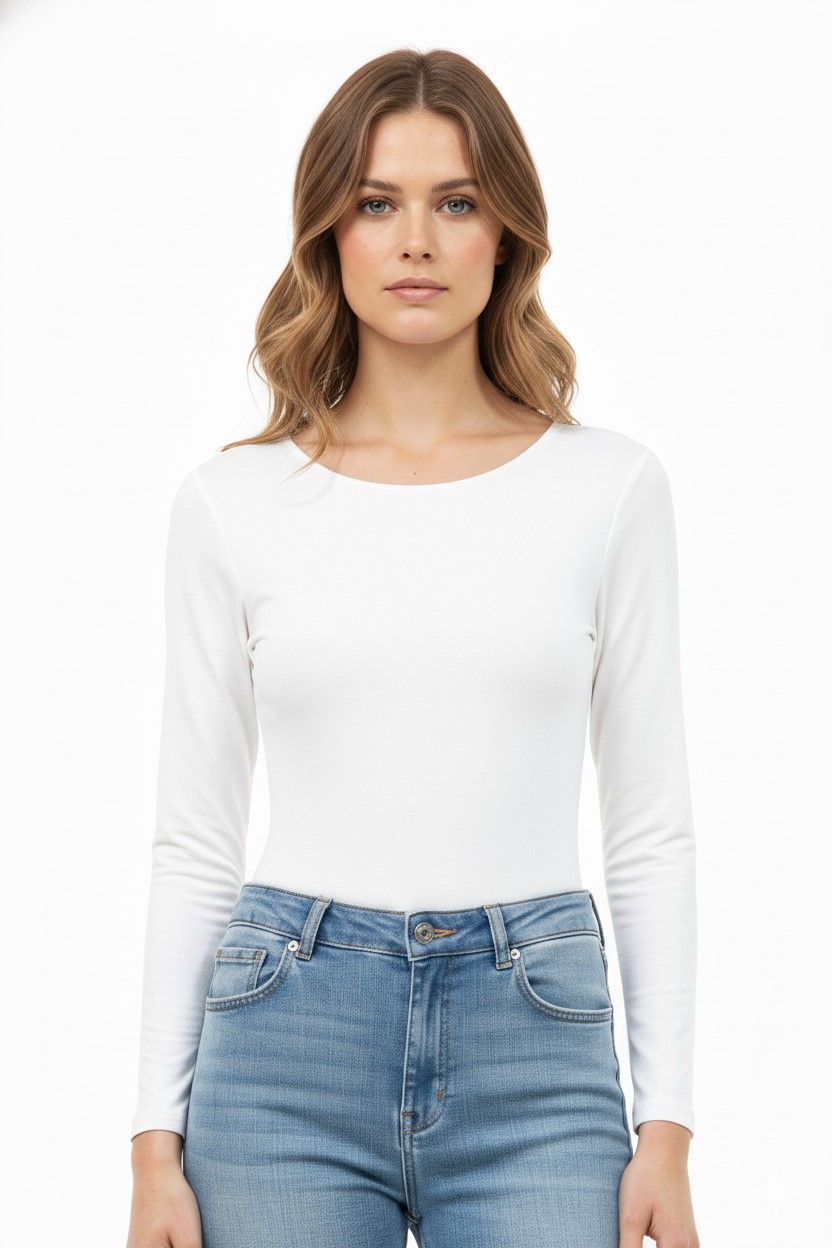Este versátil body de manga larga ofrece un diseño clásico y elegante. Confeccionado para proporcionar un ajuste cómodo y realzar la silueta, es una prenda esencial para cualquier guardarropa, ideal para combinar con diversas prendas y estilos. Su acabado liso y minimalista lo hace perfecto para crear looks sofisticados o casuales.