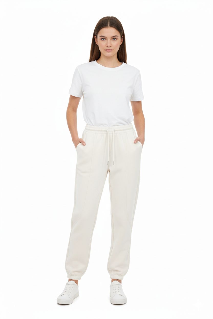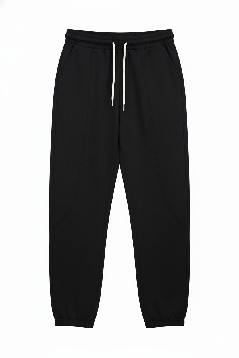 Este pantalón jogger, confeccionado con un tejido suave, ofrece un diseño holgado que brinda la máxima libertad de movimiento y un estilo contemporáneo. Presenta una cintura elástica ajustable con cordón y perneras que terminan en puños elásticos, proporcionando un ajuste cómodo y moderno. Sus detalles de costura a lo largo de las piernas realzan su estructura, mientras que los bolsillos laterales son funcionales y discretos. Es una prenda versátil, perfecta para un look casual y relajado en cualquier ocasión.